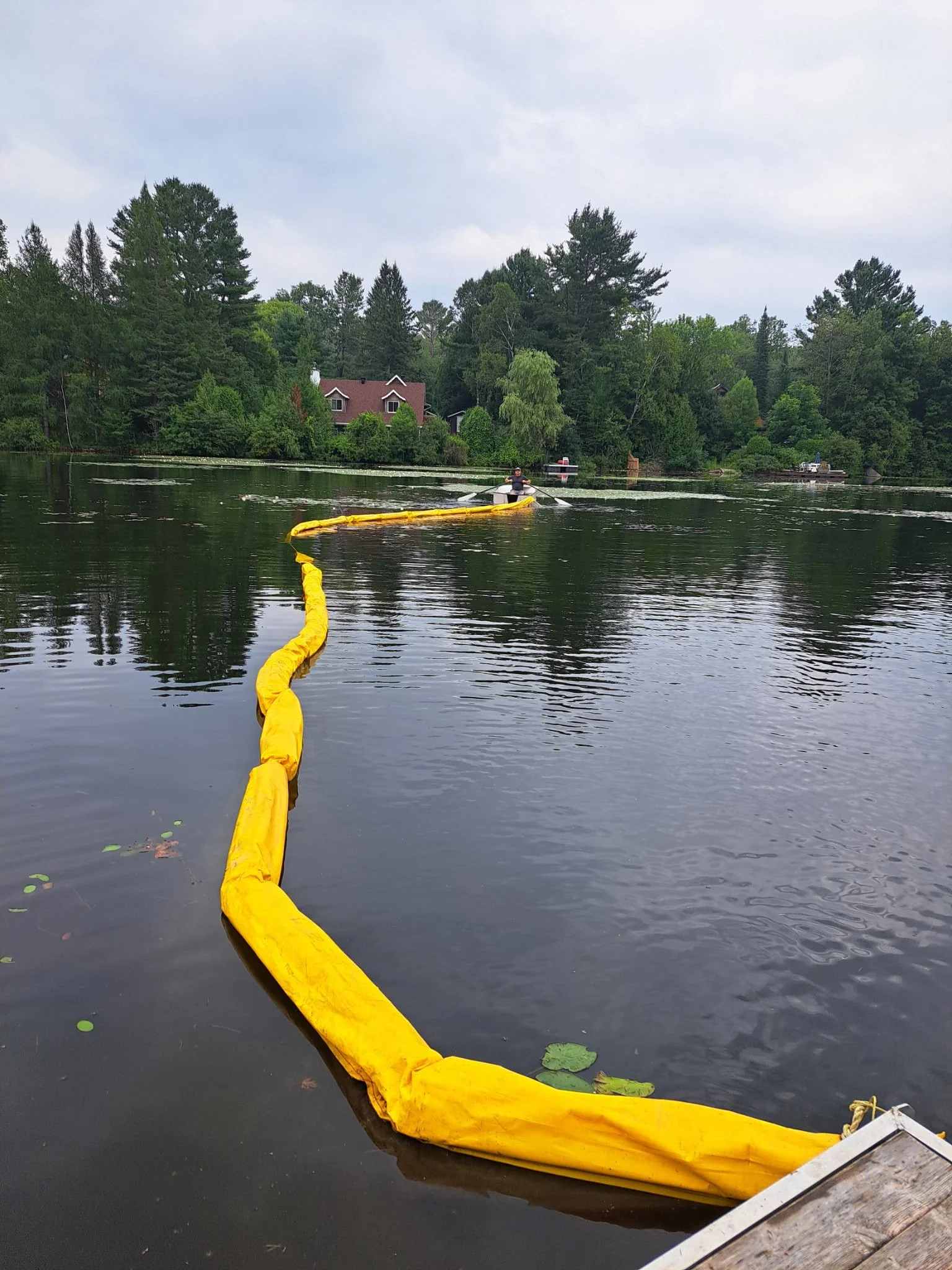 … mais malgré la superbe récolte de myriophylle à épis cette semaine et malgré l'utilisation du rideau de turbidité (voir les photos), il y aura d'autres boutures qui flotteront sur l'eau dans les prochains jours.