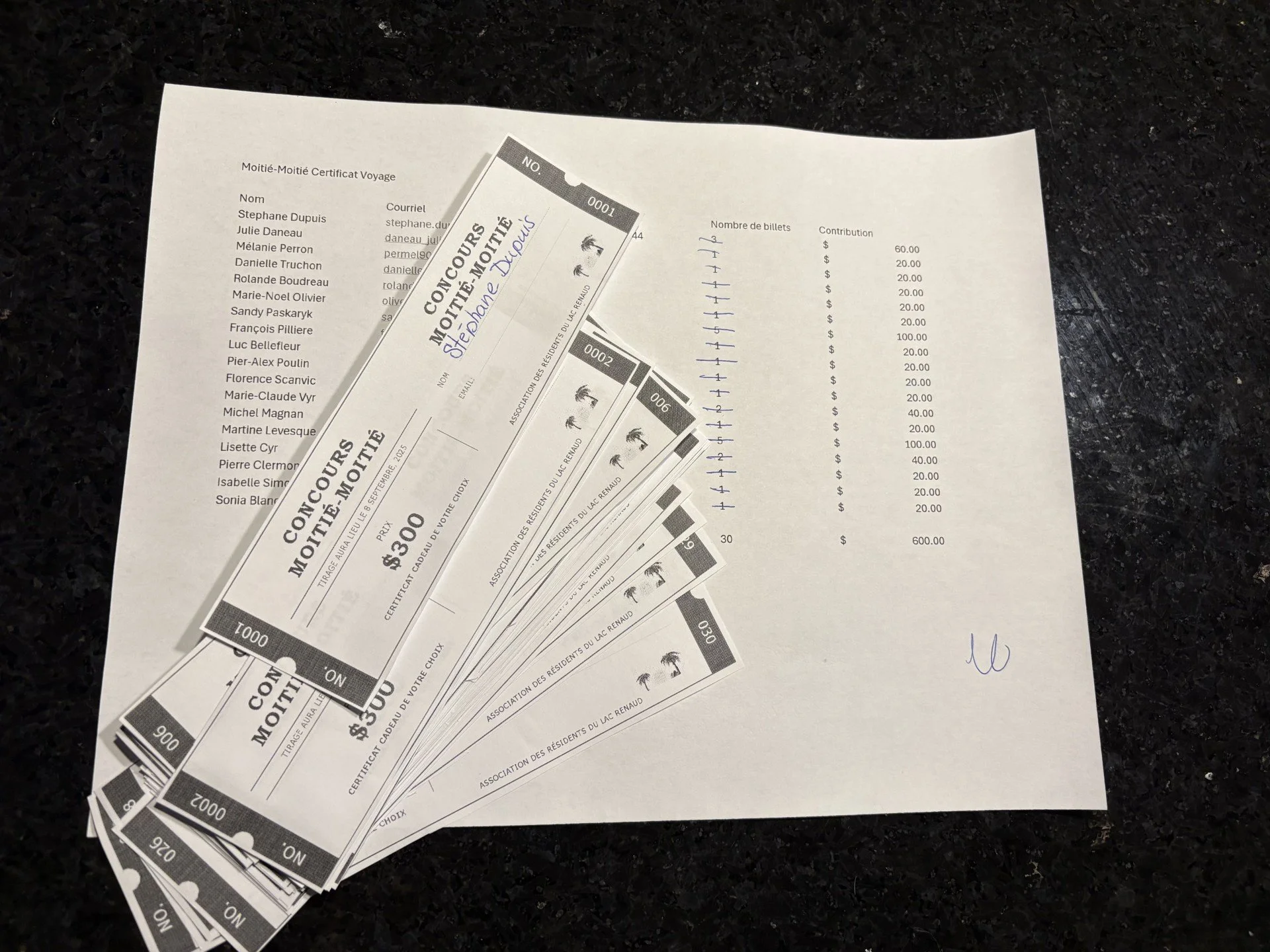 • 1er septembre: date limite pour s'inscrire au tirage--- Vous pouvez acheter autant de billets que vous le désirez;